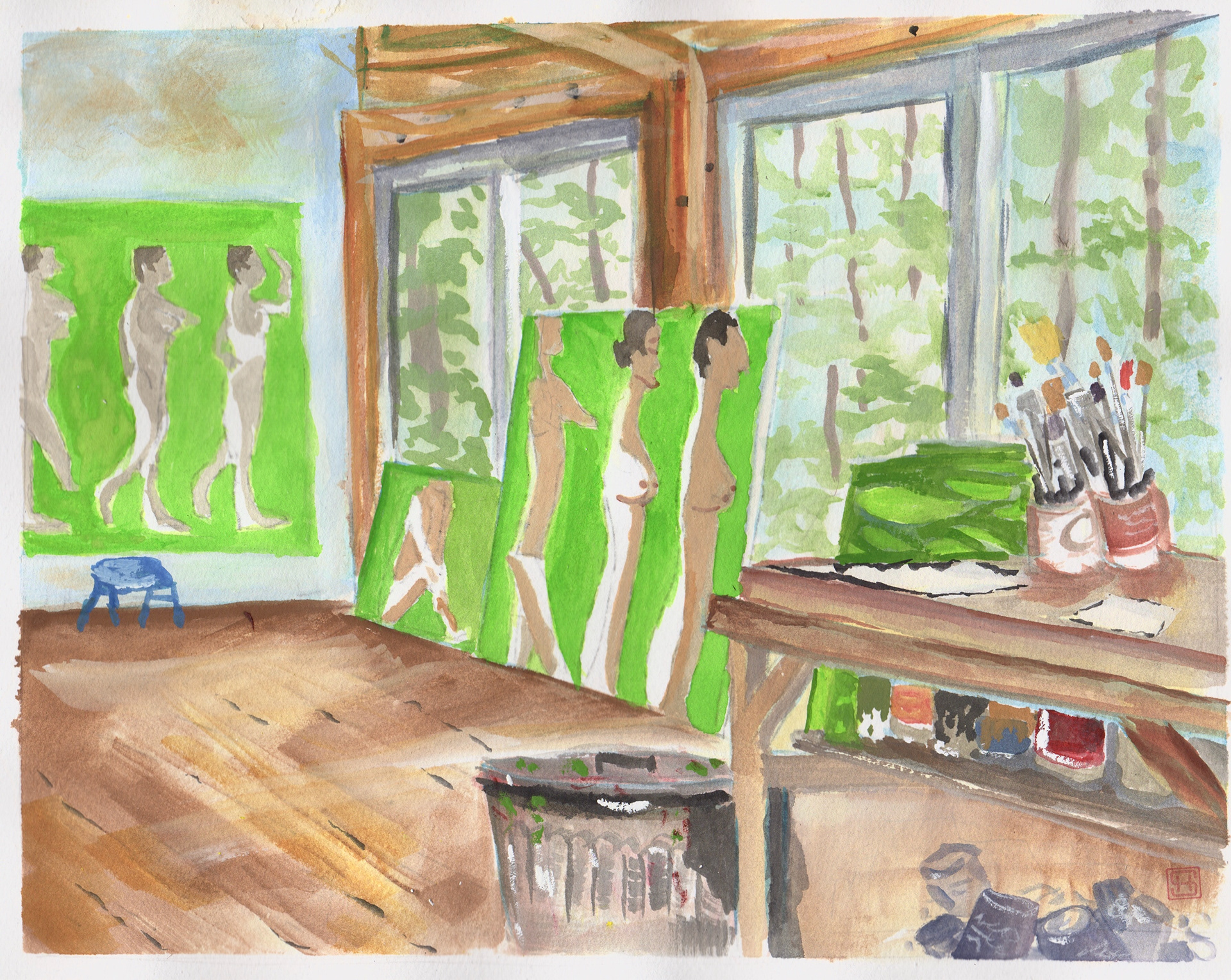 Alex Katz Studio, Lincolnville, watercolor, 9" x 12"